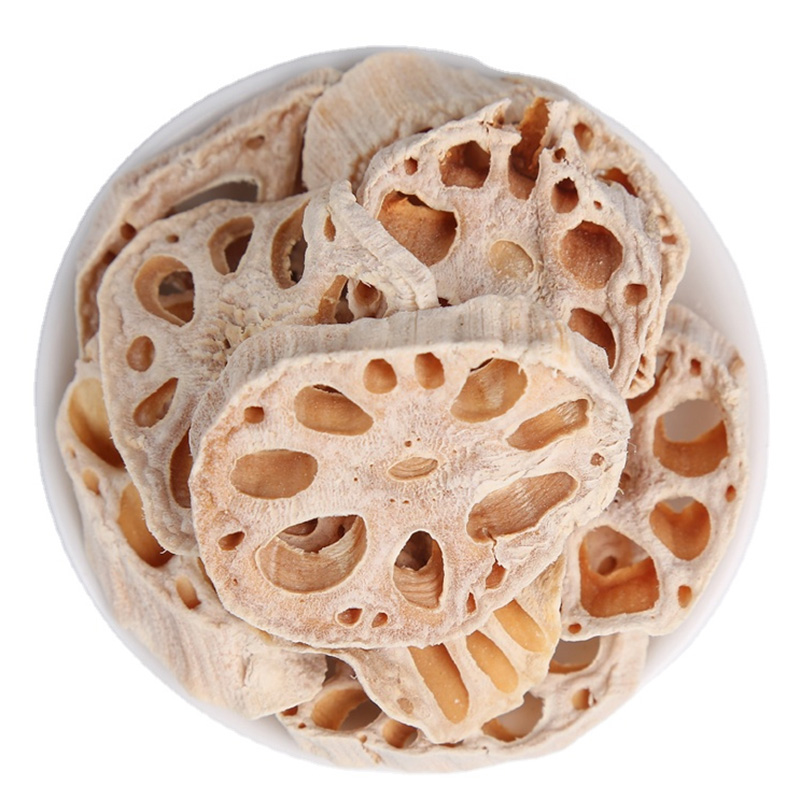 Ang mga dehydrated lotus root hiwa ay mga tuyong produkto na gawa sa sariwang hiwa ng ugat ng lotus pagkatapos ng dewatering. Pinapanatili nito ang mga nutrisyon ng mga hiwa ng ugat ng lotus at madaling iimbak at dalhin. Ang mga dehydrated lotus root hiwa ay mayaman sa protina, starch, karbohidrat, dietary fiber, bitamina, at mineral. Ang hibla ng pandiyeta sa mga hiwa ng ugat ng lotus ay nakakatulong upang maisulong ang gastrointestinal motility, mapabuti ang pag -andar ng pagtunaw, at maiwasan ang tibi. Ang bitamina C at bakal sa mga hiwa ng ugat ng lotus ay nakakatulong upang mapabuti ang balat, magsulong ng sirkulasyon ng dugo, at magkaroon ng mga pag -andar ng pag -clear ng init at detoxifying, hemostasis, pagbaba ng presyon ng dugo, at pagbaba ng mga lipid ng dugo. Ang mga dehydrated lotus root hiwa ay madaling mag -imbak at dalhin sa paligid, na ginagawang angkop para sa pang -araw -araw na meryenda o mga toppings sa pagluluto.