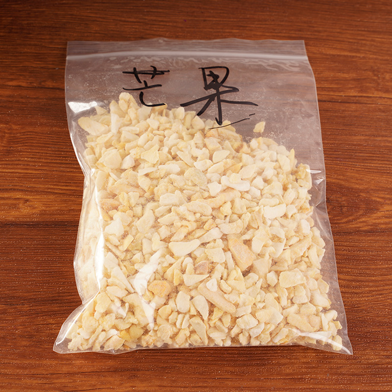 Ang freeze-dry mangga ay isang masustansiya, maginhawa at malusog na pagkain na angkop para sa iba't ibang mga okasyon at pangangailangan ng pagkonsumo. Salamat sa paggamit ng mabilis na teknolohiya ng pag-aalis ng tubig, pinanatili ng freeze-tuyo na mangga ang aroma ng sariwang mangga, kahit na hindi matamis, ngunit mayroon ding isang malakas na lasa ng mangga. Ang freeze-dry Mango ay karaniwang malulutong at mahirap, ngunit ang loob ay nagpapanatili pa rin ng isang tiyak na lambot, ay isang malusog na kaswal na meryenda, na angkop para sa lahat ng edad na makakain, maaari ding magamit upang gumawa ng mga inumin, dessert, atbp, isang iba't ibang mga gamit.